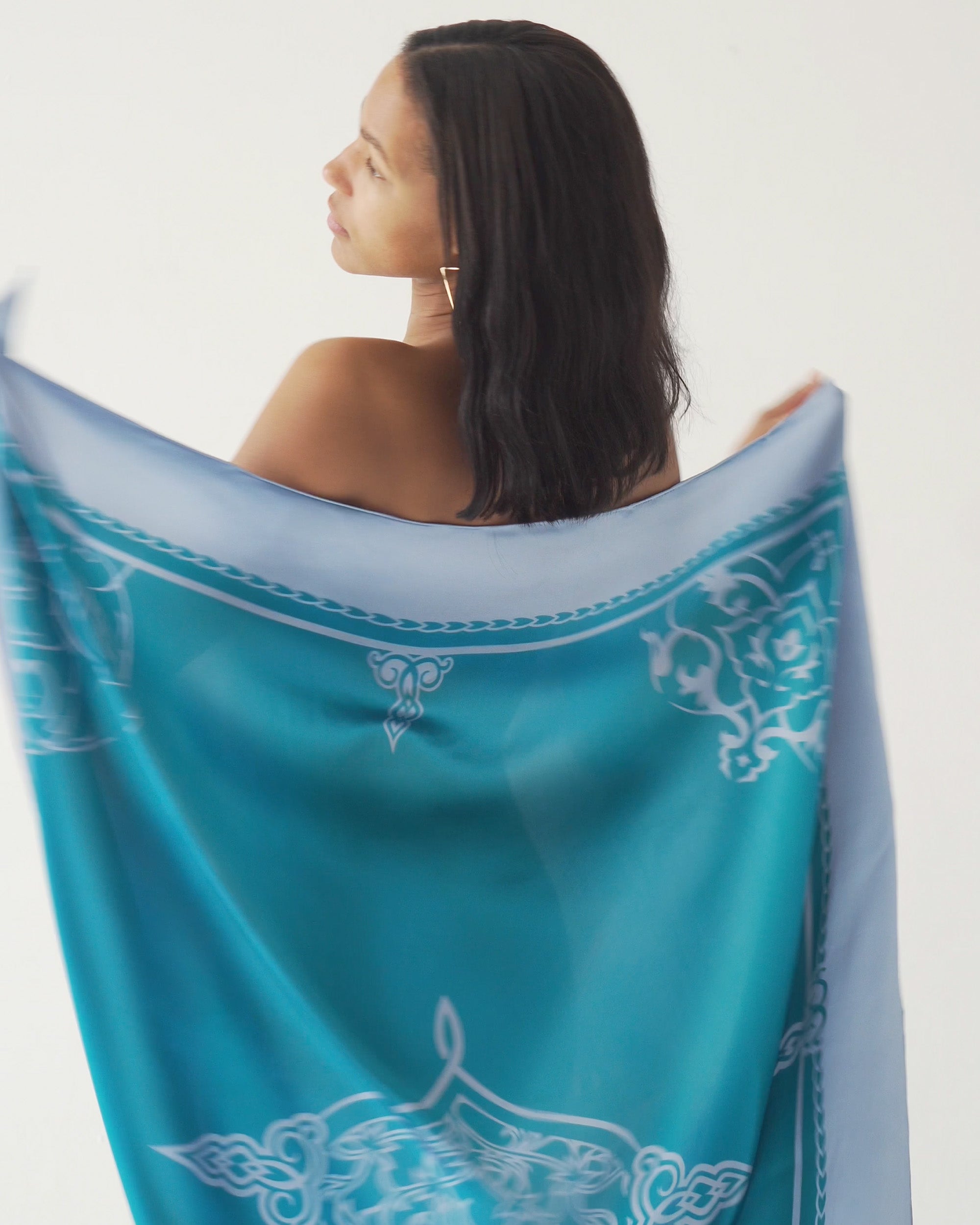 Aquamarine ornamental silk scarf | 55 x 55 in
