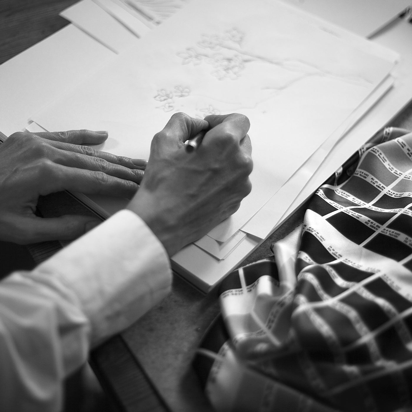 This leads inspiration for designing of the imagery and the colour palette for the fabrics. We use pure silk satin of the highest grade